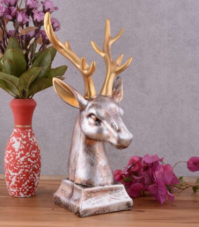 Resin Deer Head Showpiece Animal Figurine for Table Top Good Luck Vaastu Statue