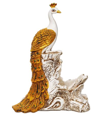 Regal White & Gold Peacock Decorative Bottle Holder Showpiece