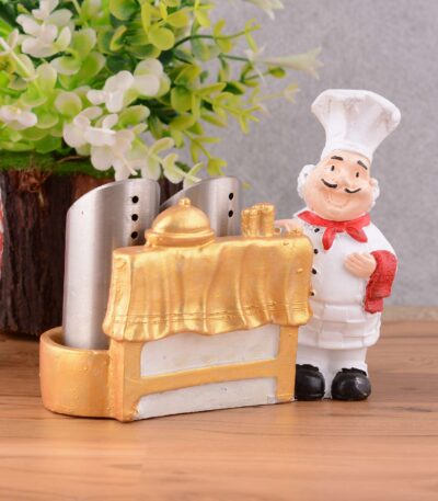Resin Chef Figures Decorative Ornaments,Kitchen Decor,Cook Café Bar Statue, French Chef Figurines with Tray Message Board-1