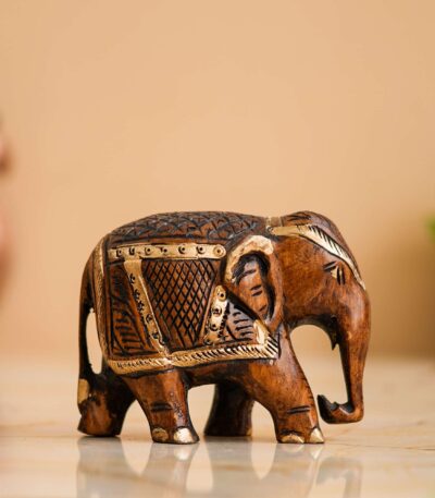 Rajasthani Tribal Handmade Brown ” Elephant ” Figured Wooden Statue Antique Design Elephant for Showpiece with Brown Colour-1