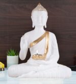 Buddha statue is perfect for both indoor and outdoor use, making it ideal for gardens, patios, or even your home temple for performing Puja and Upasana. of his enlightenment. This large buddha statue is a symbol of peace and harmony, making it the perfect addition to your home decor. The meditation Buddha statue can bring good luck, auspiciousness, wealth, a warm & contemplative atmosphere to home or office Meditating Buddha statue figurine will be your gentle reminder of Buddha’s calming presence. Lord Buddha is dear to his devotees and is definitely pleasant to look upon. Exquisitely designed?