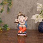 Resin Playing Flute Ganesh Idol Statue Best For Home & Office Decor (Flute Vinayak), Multi Colour