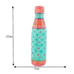 Artisan-crafted hand-painted Aluminum water bottle in turquoise and pink floral motifs – perfect blend of tradition and utility.