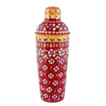 Vibrant red hand-painted cocktail shaker with traditional Indian floral design – perfect for stylish and cultural mixology.