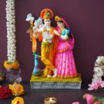 This beautiful statue depicts the Hindu deities Krishna and Radha. Krishna is a central figure in Hinduism, and Radha is his consort. The statue is made of high-quality resin and is hand-painted. It is 12 inches tall and would be a perfect addition to your home or office.