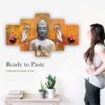 Buddha Set of Five 3D Framed Paintings for Wall Decoration – Ideal for Home, Living Room, and Bedroom (75 x 43 CM)