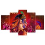 Radhe Krishna Set of Five 3D Framed Paintings for Wall Decoration – Ideal for Home, Living Room, and Bedroom (75 x 43 CM)
